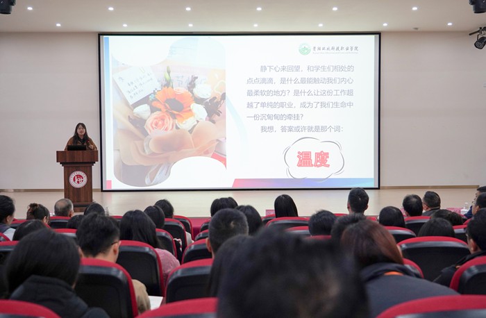10月24日下午,我校特邀集团兄弟院校资阳环境科技职业学院智能与制造学院学生党支部书记、专职辅导员唐春红老师,为全校教职工开展了一场以“班主任责任与能力”为主题的培训。