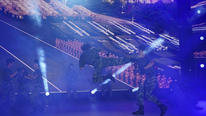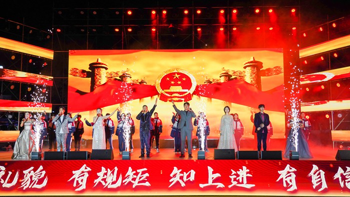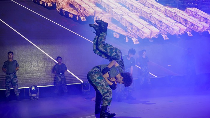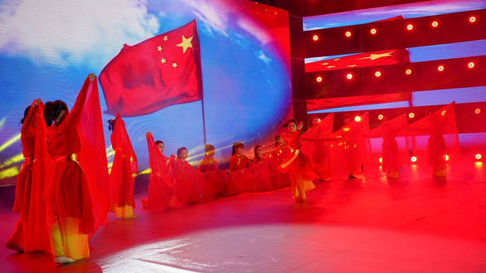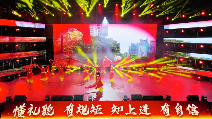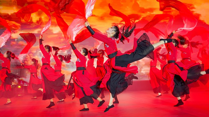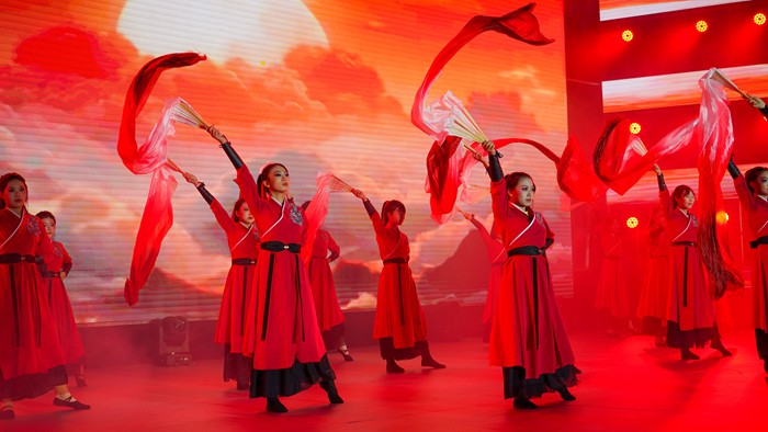 红旗飘扬,步伐铿锵;一面红旗,一片赤诚。舞蹈《红旗颂》以深情演绎致敬祖国,舞者们用炽热的身姿,诠释那鲜血染就的信仰与荣光,让红色基因在青春舞台上赓续传承。