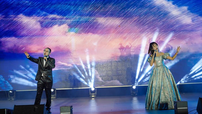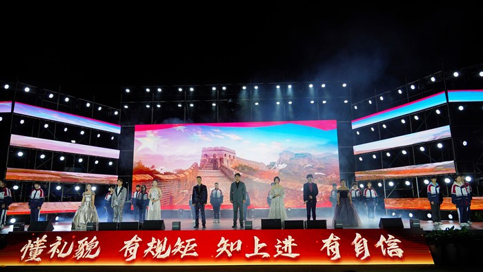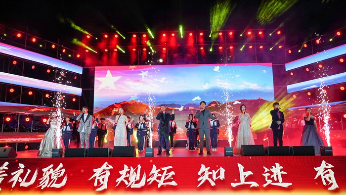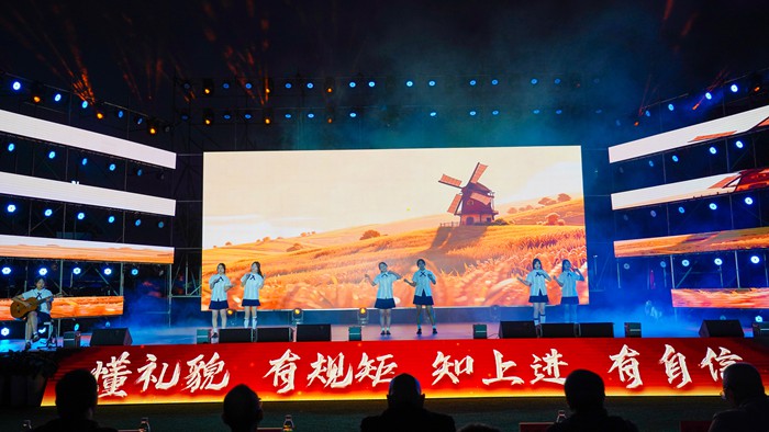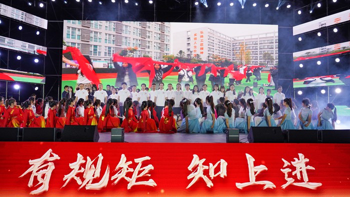 “歌声嘹亮,深情告白”。师生同台合唱《我爱你中国》。熟悉的旋律响起,每一个音符都饱含对祖国的赤诚与热爱,每一句吟唱都传递着 “强国有我” 的青春誓言,将晚会氛围推向高潮。