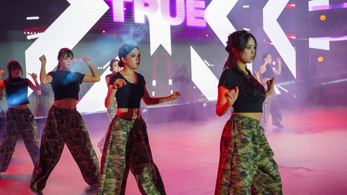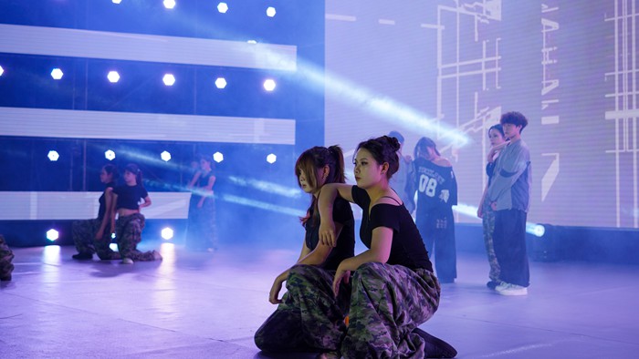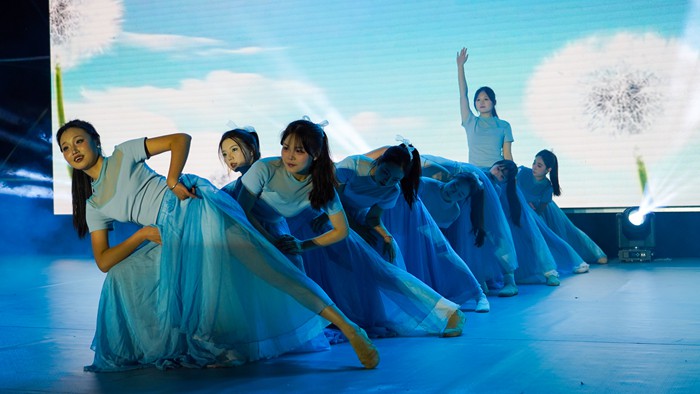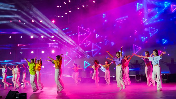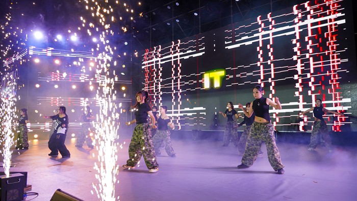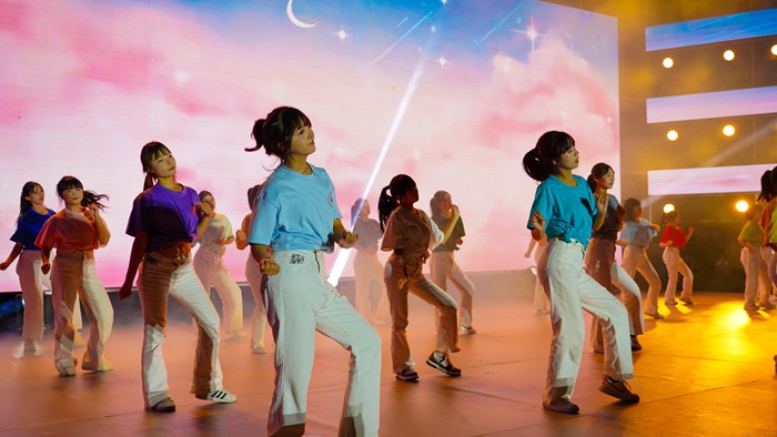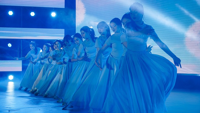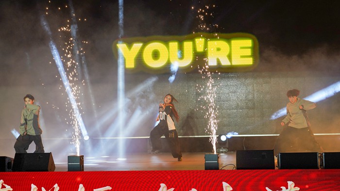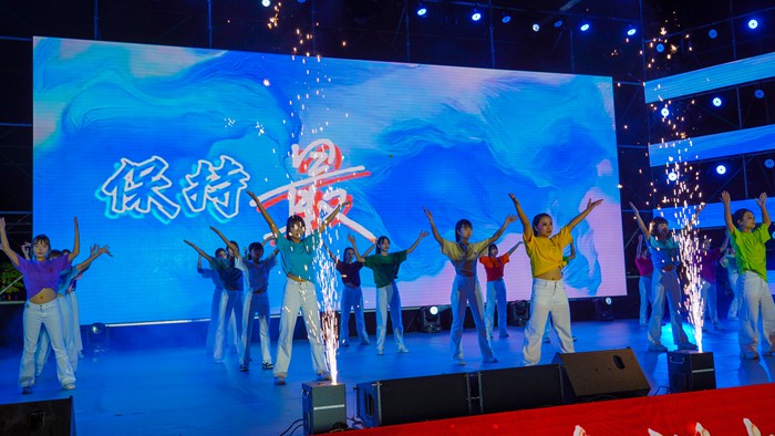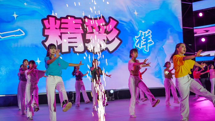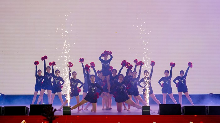 青春是什么?舞步轻旋,似教室窗外疯长的枝桠,拂过青春的悸动;裙摆翻飞,如课桌缝隙藏着的心事,诉说成长的絮语。跃动的节拍点燃全场,为夜晚注入蓬勃朝气,让青春的序章在肢体语言中悄然铺展。