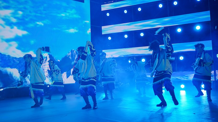 跃起,是荣誉的高度;旋转,是拼搏的弧度。舞者们用高难度的跳跃、默契的配合与饱满的热情,诠释着拼搏的荣光与团队的力量,每一个旋转、每一次托举都是日复一日坚持的见证,赢得现场阵阵掌声。