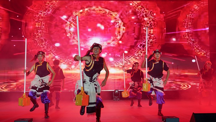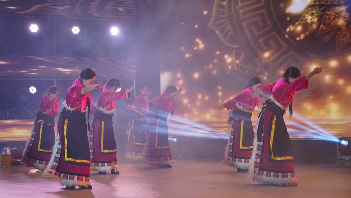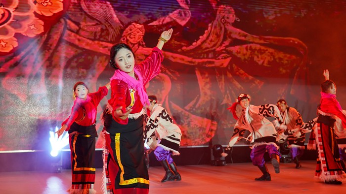 来自集团兄弟院校——资阳环境科技职业学院的同学们,带来的藏族舞蹈《新寨欢歌》,以浓郁的藏式风情惊艳亮相。舞者们身着特色民族服饰,用悠扬的歌声、欢快的舞步,生动再现了藏族牧民告别游牧、共建新居的喜庆场景,令人惊艳。