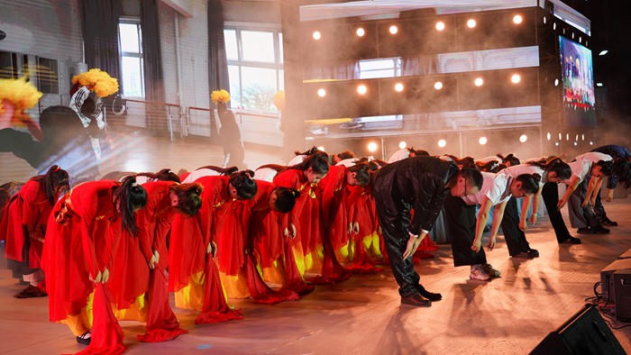 谢幕舞《坚守》温情上演。同学们用舒缓的舞姿,演绎着技工教师们扎根校园育人的坚守,也诉说着学子们在师长陪伴下从懵懂到成熟的成长历程。